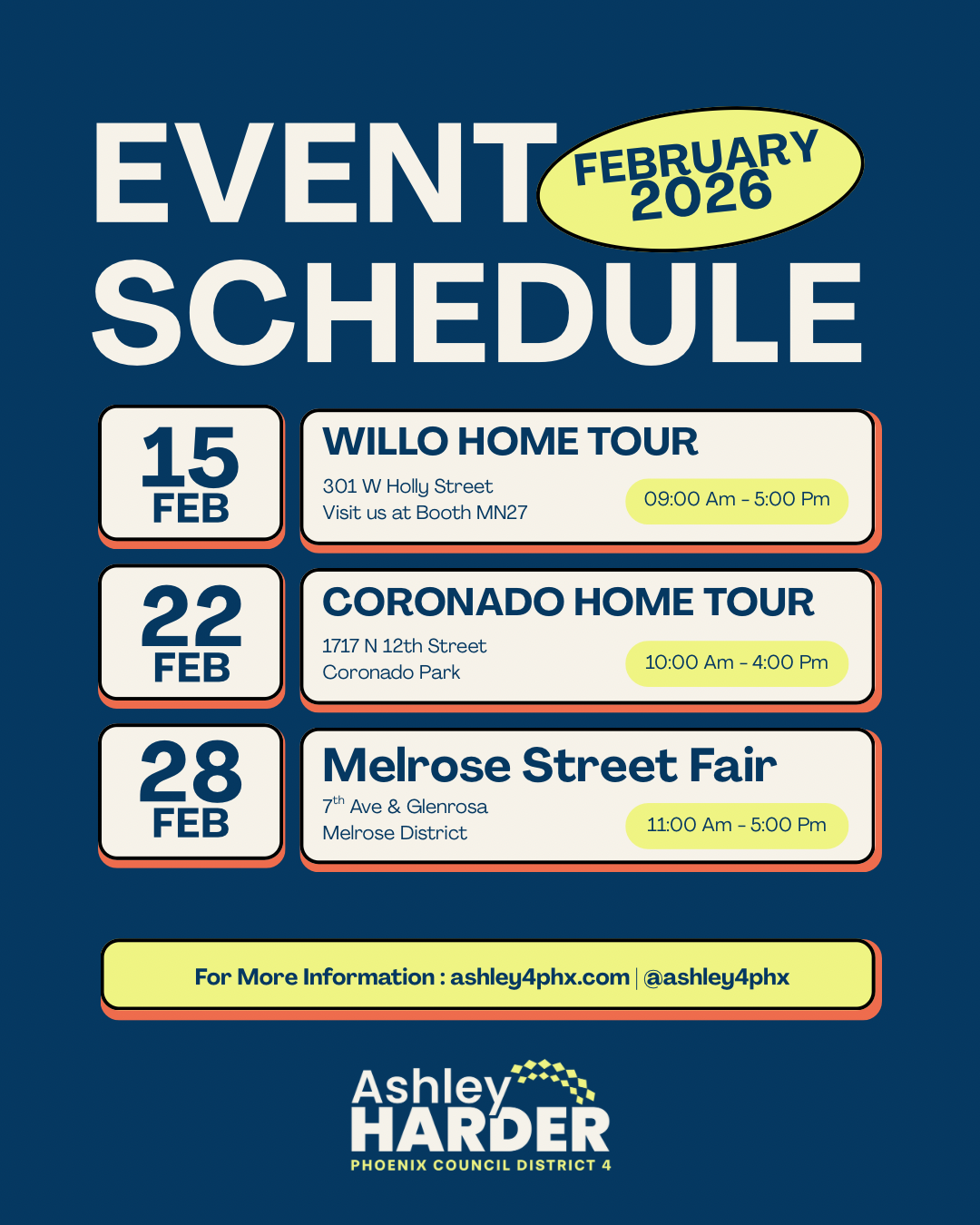 Here’s a rundown of the events where you can meet Ashley and the team. This year kicked off with real momentum and we’re building toward a win. Our team is canvassing, showing up at events, hosting weekly meet and greets, and ready to connect with you this February. Check us out and come say hello.